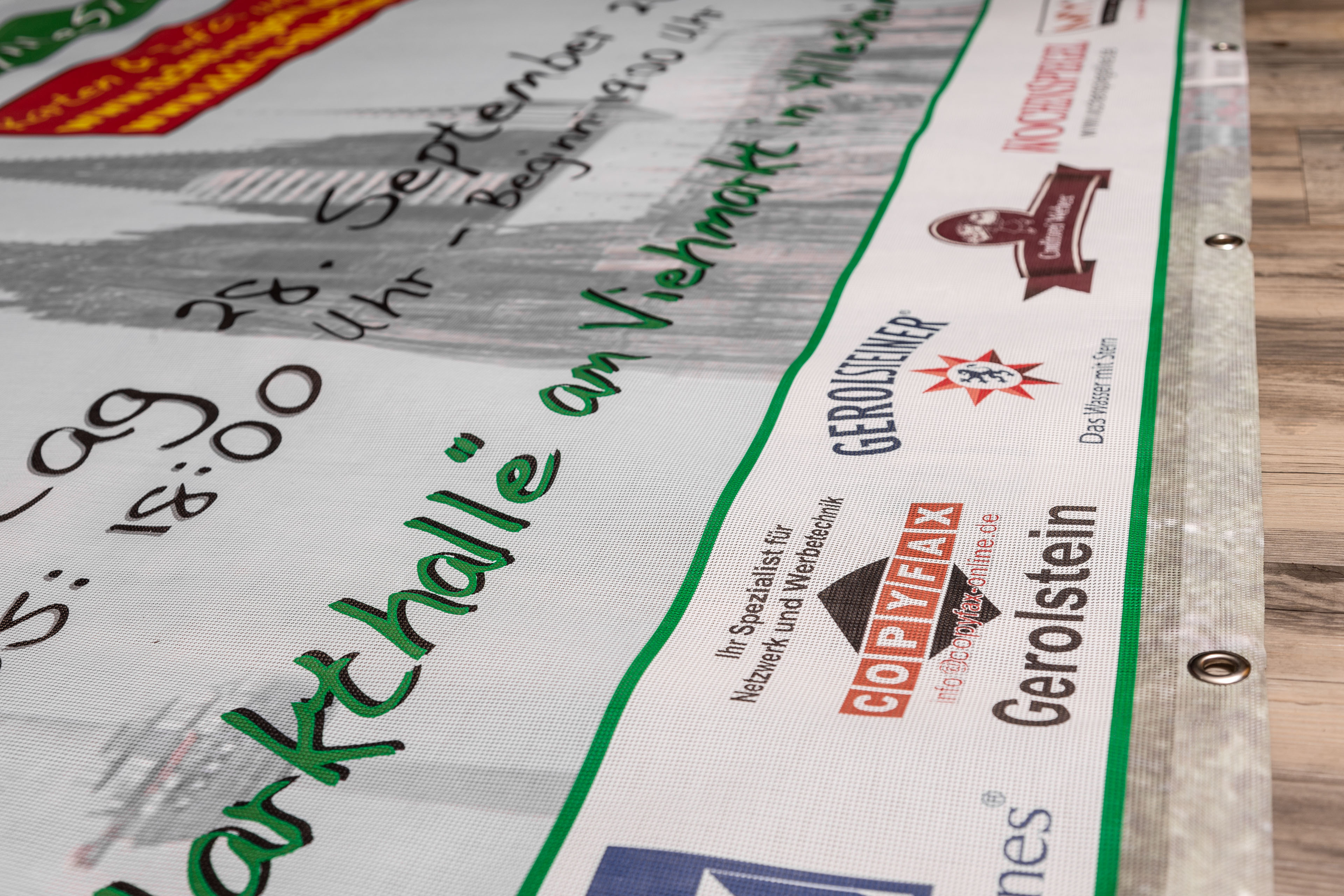Banner sind nach wie vor die mit am häufigsten genutzen Werbeträger. Wir bedrucken Banner mit bis zu 160cm Breite und einer Länge von bis zu 75 Metern. Selbstverständlich sind die von uns gefertigten Banner wetterbeständig und bei der Verwendung von Meshgewebe auch relativ unempfindlich gegen Wind. Für eine optimale Befestigung werden die von uns gefertigten Banner an den Rändern umgelegt und verklebt, damit wir die Ösen reißfest anbringen können. Schauen Sie selbst: MEHR >>